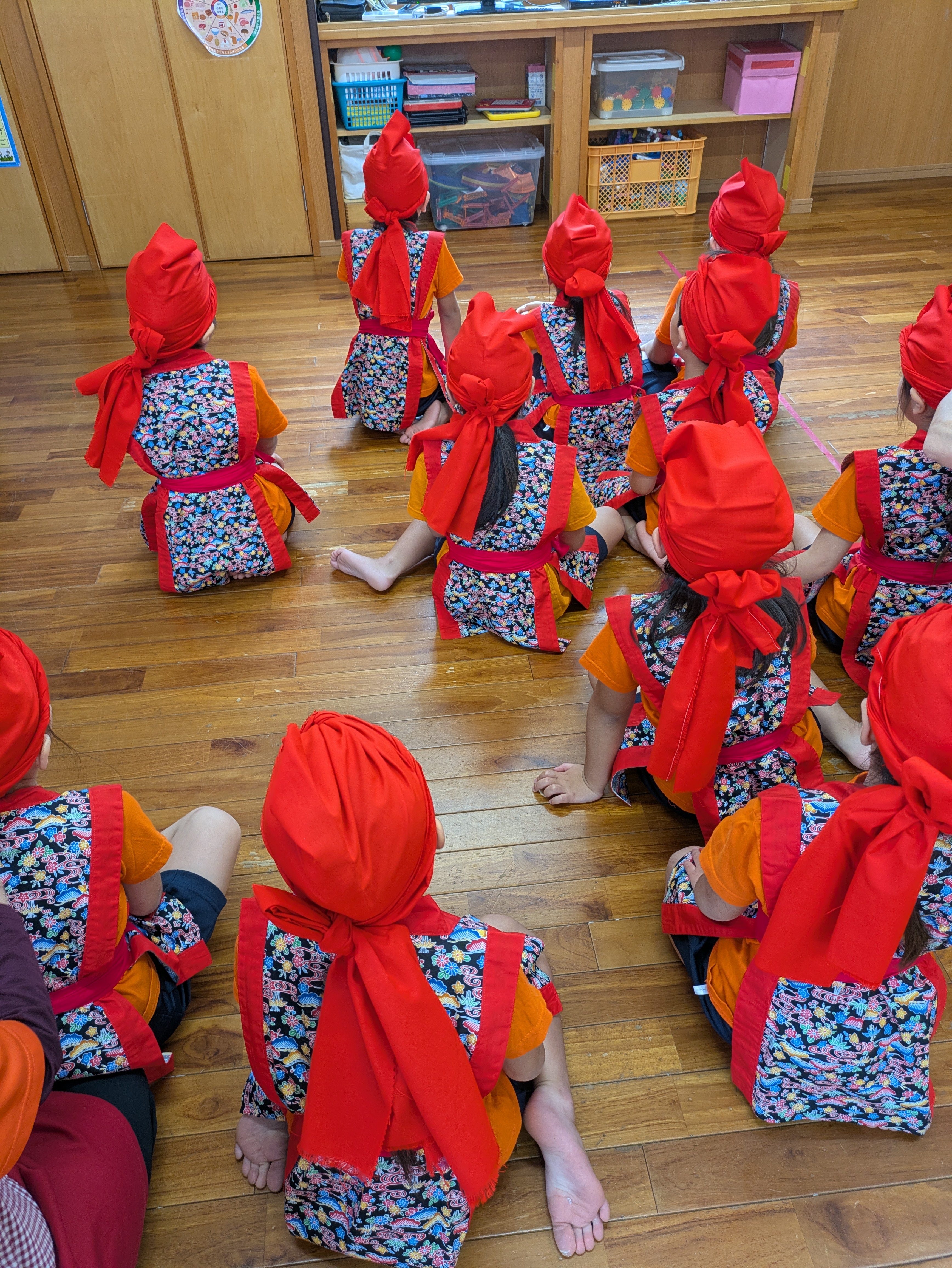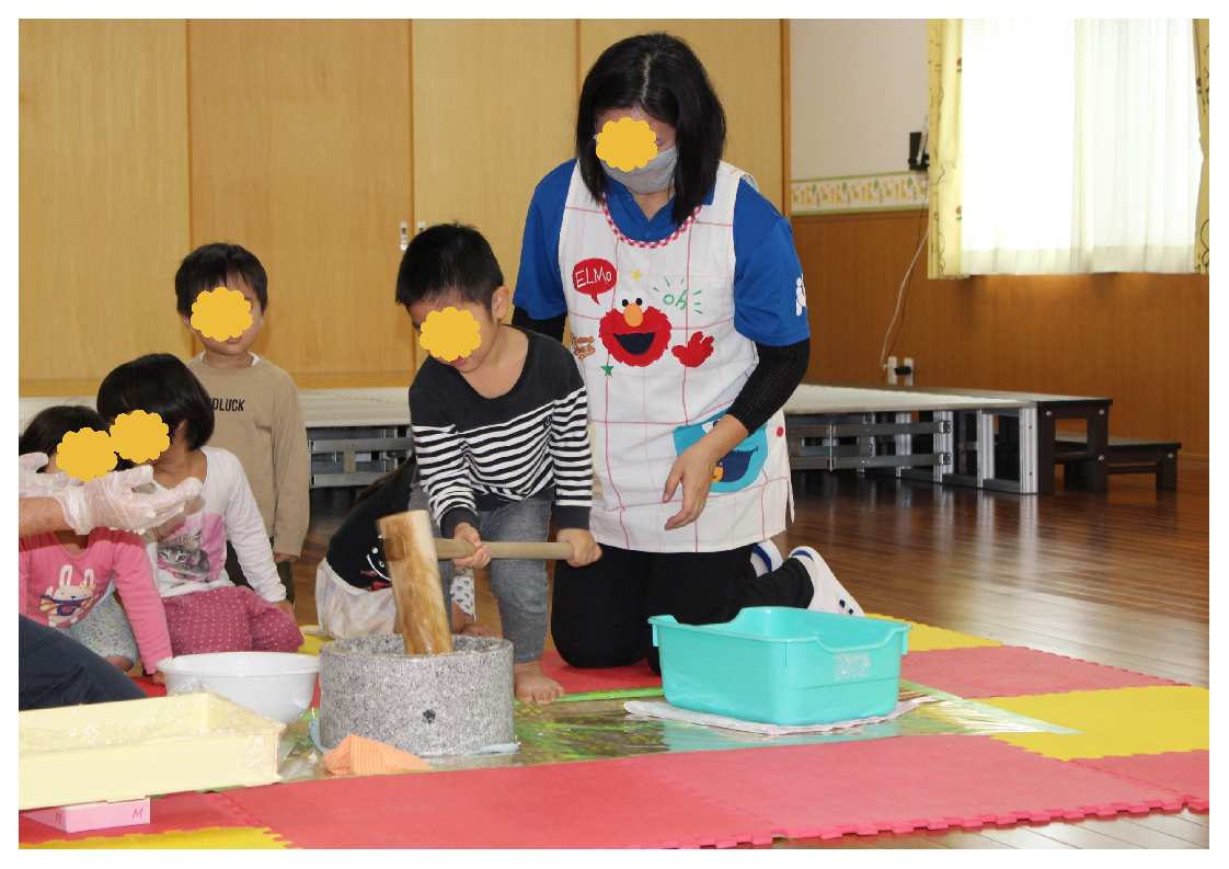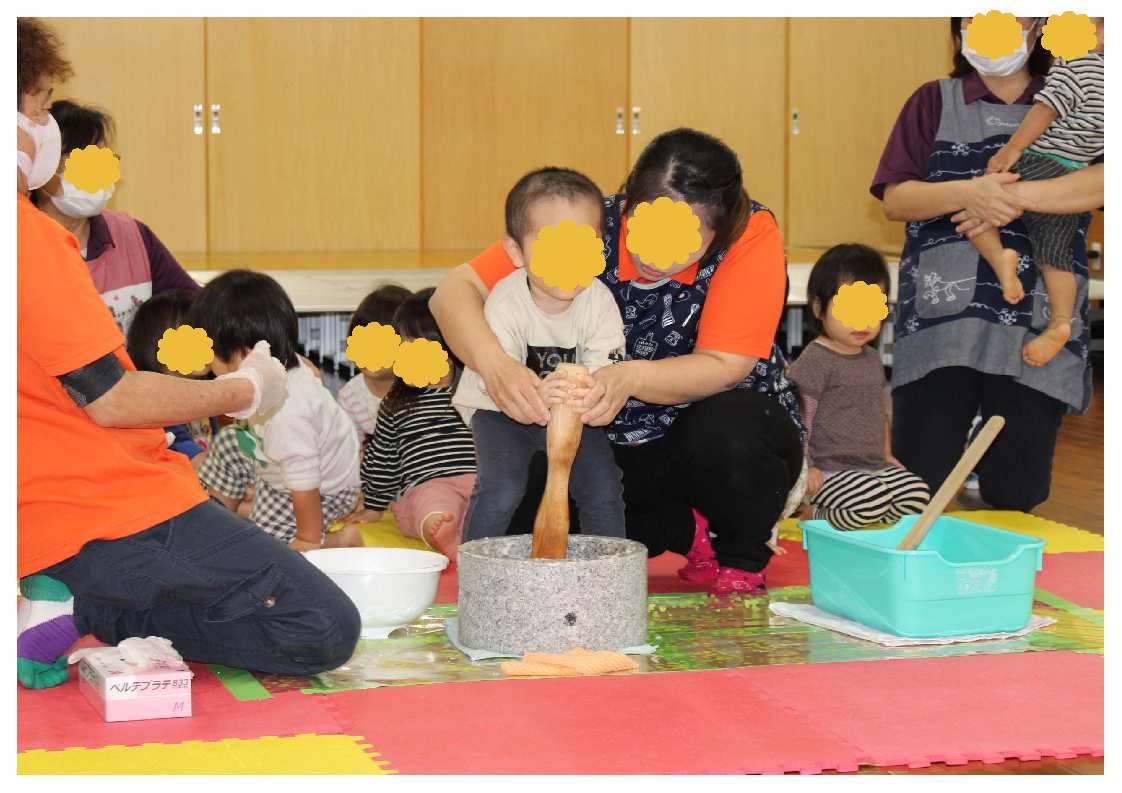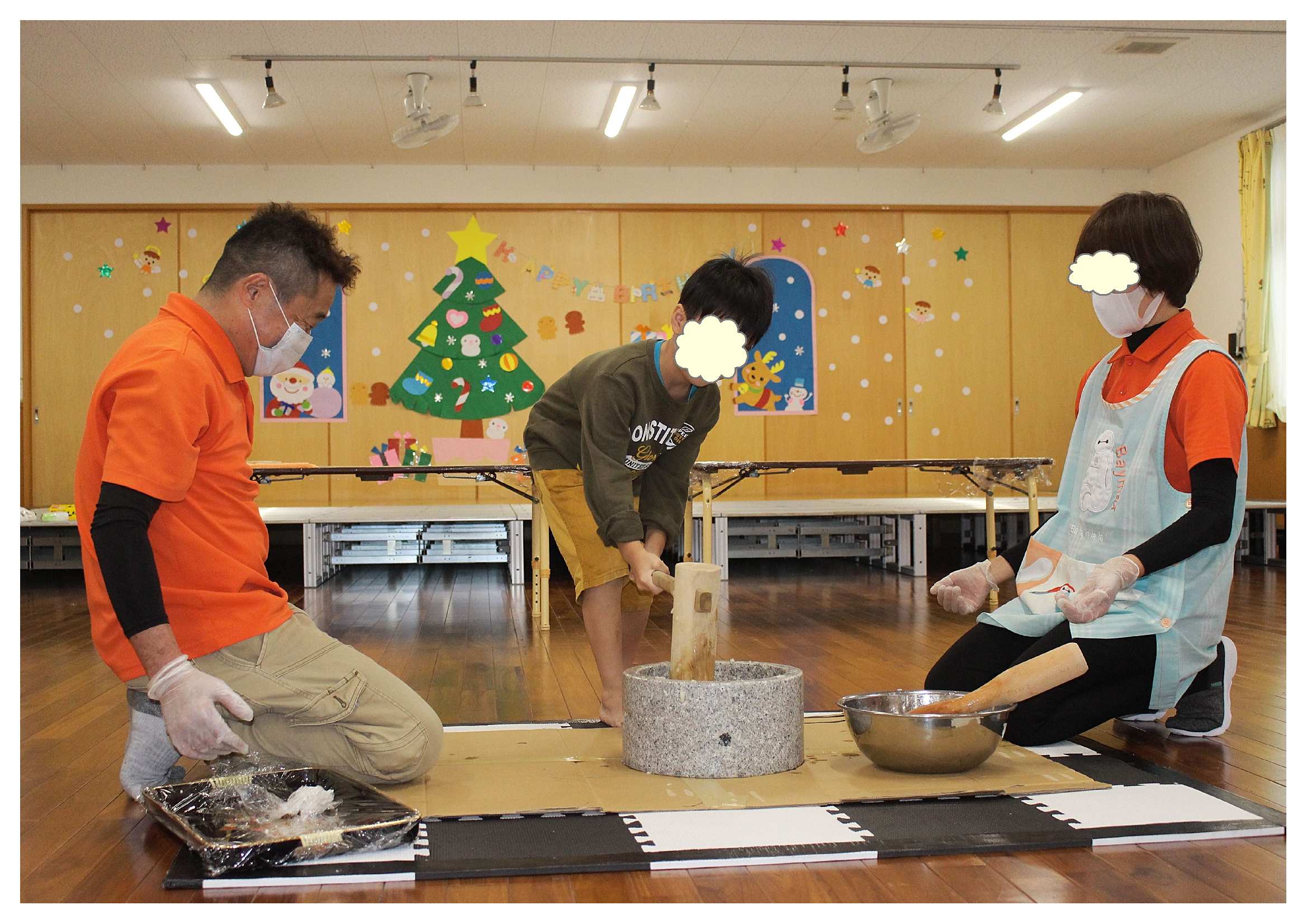 サンタが帰ったらすぐにお正月の用意です。みんなで鏡餅を作りました。これが終わると一年も終わるなーという気持ちになります。今年はコロナウィルスにより運動会や敬老の集いが中止になったりお遊戯会も無観客で行ったりといつもとは違い一年でした。保護者や子どもたちや職員にもいろいろな制約や規制を行いながら見えないウィルスと戦ってきました。しかし大変なことだらけではなく、内地から新しい先生が2人は入り、(内緒ですが少し平均年齢も下がりました)いけむら保育園に良い風が吹いたと思います。他の職員もいい刺激が受けられみんなで一歩前進できたと思います。来年度には待ちに待った新卒の保育士も入職予定なのでまた楽しみです。今年一年至らないところも多かったと思いますがみんなの笑顔を守って行ってました。今年一年ありがとうございました。来年もよろしくお願いします。最後になりますが、嵐のみなさまお疲れ様です。またみんな揃って会えることを待っています。